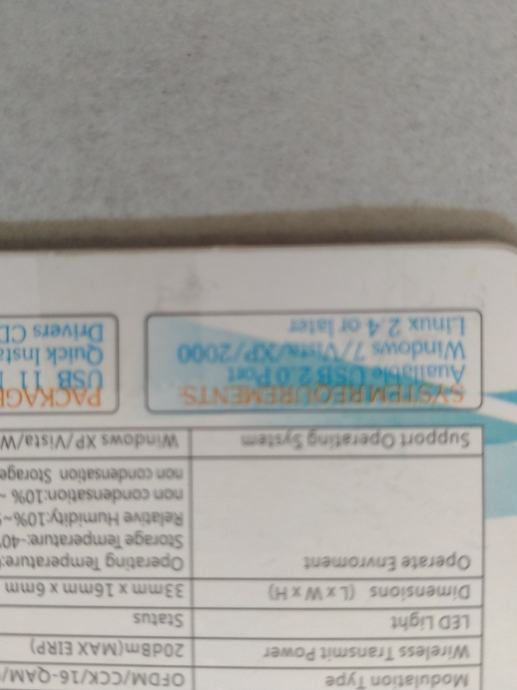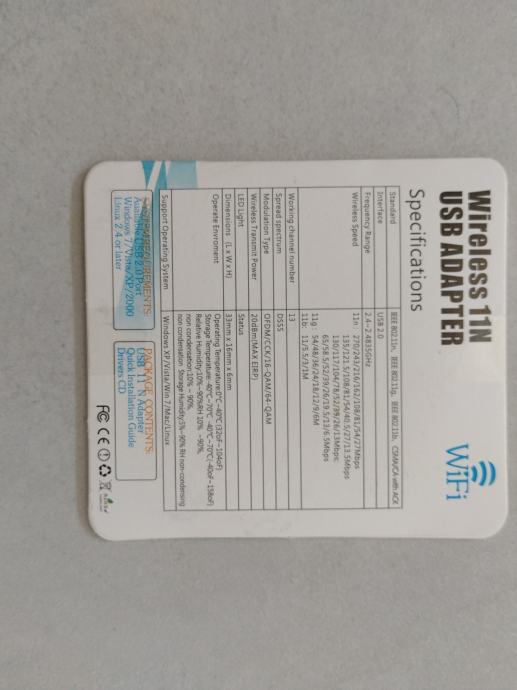 USB 2.0 adapter za WiFi, Windows 7, XP, 2000, LINUX.