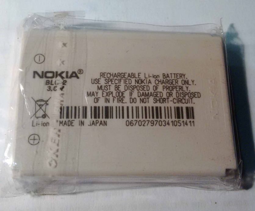 Baterija BLC-2 zapakirana za Nokiu 3310, 3330, 3410, 3510i, 5510, 6650, 6800 i ostale modele koji koriste istu..