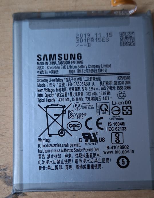 Prodajem originalnu Samsung bateriju za model A30s. Baterija je rabljena, ali funkcionalna i spremna za ugradnju. Namijenjena je zamjeni istrošene baterije u Samsung A30s mobitelima.