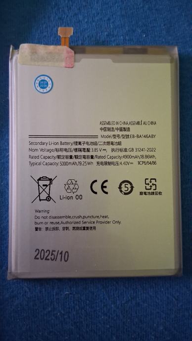 Prodajem novu zamjensku bateriju za Samsung mobitele, modeli Galaxy A14 5G i A146B, odgovara i na neke druge modele. Kapacitet baterije je 5000mAh, napon 3.87V. Radi se o litij-ionskoj bateriji s nominalnim naponom 3.87V i ograničenim naponom punjenja 4.40V. Baterija je zapakirana i spremna za ugradnju.