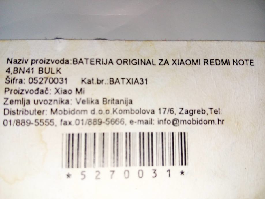 Redmi Note 4 original baterija