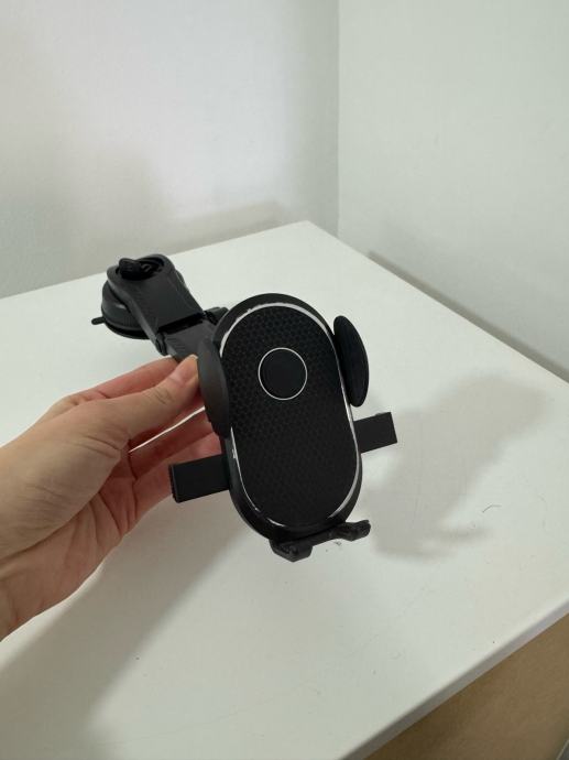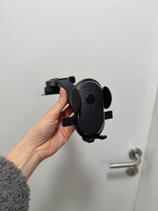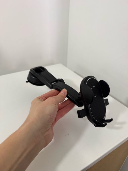 Prodajem automobilski držač za mobitel u crnoj boji. Držač ima prilagodljive bočne stezaljke koje se automatski zatvaraju i prilagođavaju veličini mobitela. Mehanizam omogućava jednostavno postavljanje i vađenje uređaja jednom rukom. Praktično rješenje za siguran smještaj mobitela tijekom vožnje.