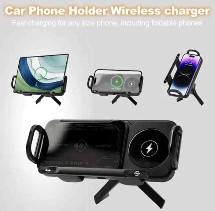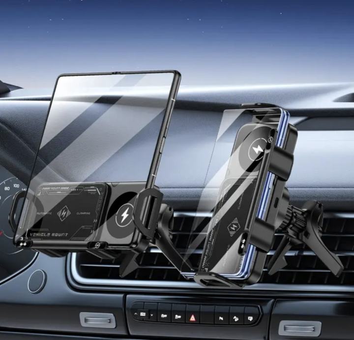 Zaboravite na petljanje s kabelima i nesigurne držače koji padaju na svakoj rupi. Ovo je ultimativno rješenje za vaš automobil – inteligentni 2-u-1 sustav koji drži i puni vaš uređaj, bio on standardni smartphone ili najnoviji preklopni model!