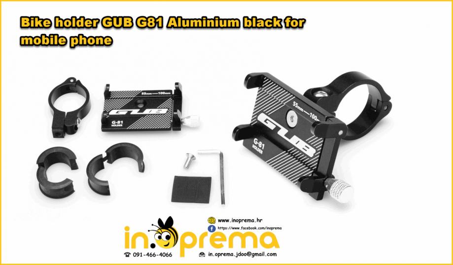 Aluminijski držač za bicikl - GUB G81. Omogućuje vam sigurno imobilizaciju telefona i njegovo slobodno korištenje tijekom vožnje. Kompatibilan je s 3,5 "-6,2" mobilnim uređajima.