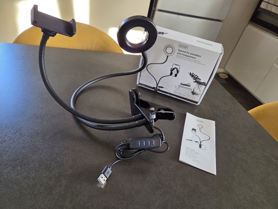 LED ring sa kopčim za stol i držačem za mobitel, NOVO.