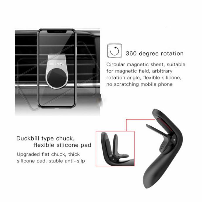 Magnetski držač za mobitel koji se postavlja na ventilaciju od automobila.