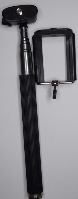 Prodajem teleskopski selfie štap (do cca 95 cm) s kuglastom glavom (ball head) i adapterom/držačem za mobitele. Sve je ispravno, čvrsto i neoštećeno, bez pukotina i bez klimanja u spojevima.