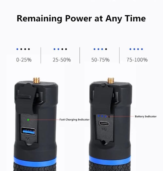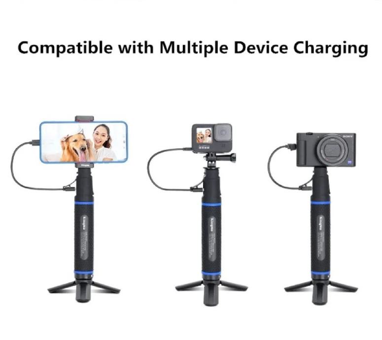 Nikada više nećete morati brinuti o ispražnjenoj bateriji dok stvarate nevjerojatne trenutke. Ovaj selfie držač s ugrađenim punjačem kapaciteta 10.000mAh osigurava da vaš mobilni telefon, džepna kamera, Insta 360 kamera, GoPro i drugi uređaji budu uvijek spremni za akciju.