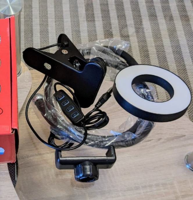 Prodajem stalak/držač za mobitel s LED osvjetljenjem. LED svjetlo ima 3 nijanse - neutralno, toplo i hladno. Fleksibilni kukovi za svjetlo.