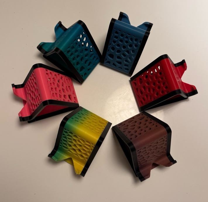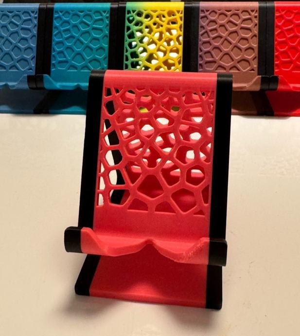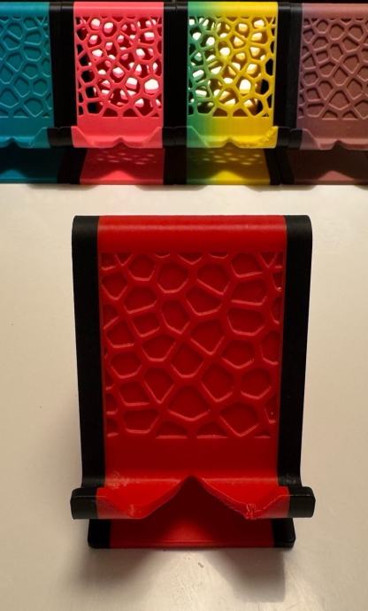 Prodajem novi stilizirani stalak za mobitel izrađen 3D printanjem. Dostupan je u više boja: tirkizna, plava, crvena, žuto-zelena i smeđa, pa možeš odabrati onu koja ti najviše odgovara.