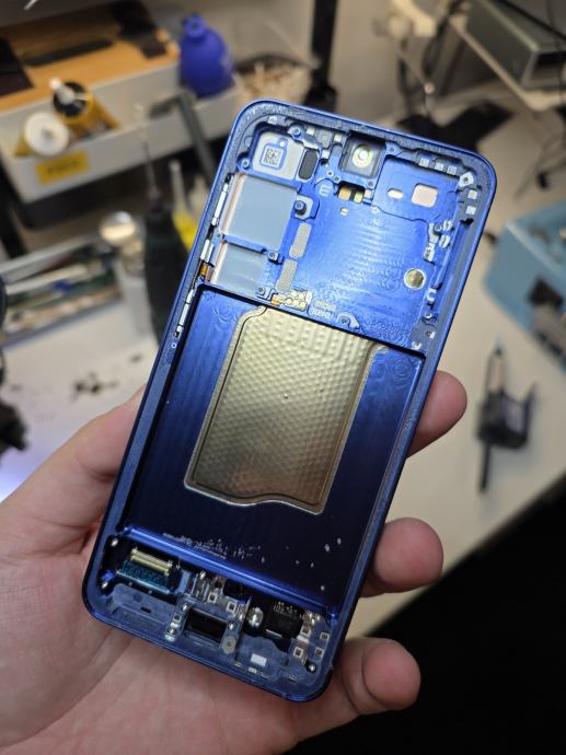 Ekran sa okvirom za samsung s25 u navy blue boji. Touch radi u svakom dijelu ekrana i mrlja se ne širi.