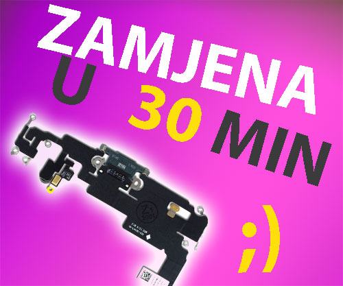 Promjena konektora punjenja na Apple iPhone 11 uređaju . Ako uz konektor nema većih okolnih oštećenja promjena je u većini slučajeva gotova unutar sat vremena od zaprimanja uređaja.