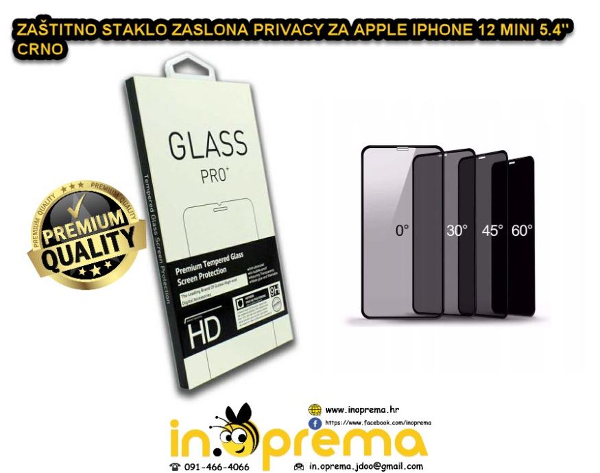 CIJENA - ZAŠTITNO STAKLO ZASLONA PRIVACY ZA APPLE IPHONE 12 MINI CRNO - 10 EUR