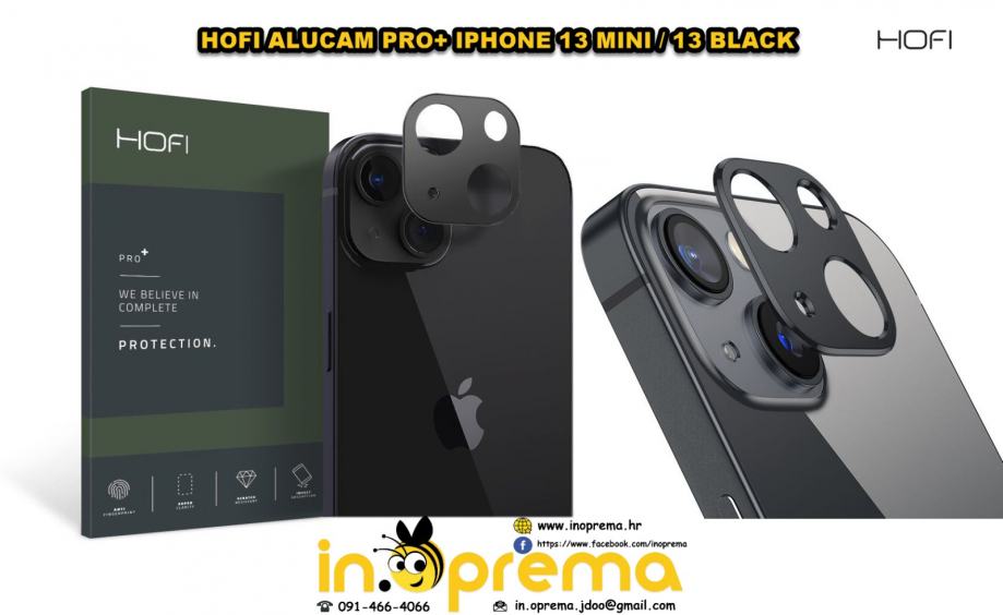 ZASTITNI ALUMINISKI OKVIR ZA KAMERU HOFI ALUCAM PRO + IPHONE 13 MINI / 13 BLACK CAMERA COVER ZASTITNO STAKLO ZA KAMERU KAMERA LENSS IPHONE 13 MINI / 13 ZASTITA KAMERE LECA KAMERE POSTARINA 10 KN 091/466-4066