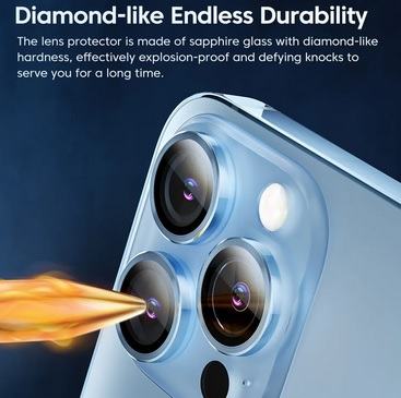 [0.3MM Ultra-Thin] The 0.3mm ultra-thin protective film hides perfectly from your lens, providing a bare-phone looking and touching. High hardness, anti-scratch, ultra high-definition, easily using, ultra-thin, multi-layer protection. The lens protector is made of sapphire glass with diamond-like hardness, effectively explosion-proof and defying knocks to serve you for a long time.