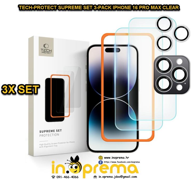 TECH-PROTECT SUPREME SET 3-PACK IPHONE 16 PRO MAX CLEAR