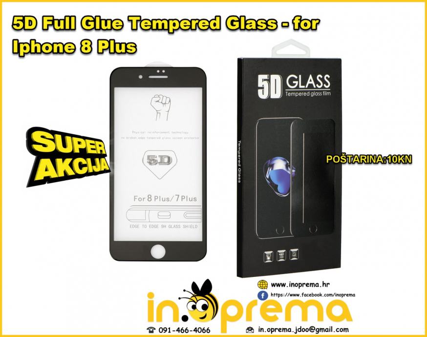 IPHONE 8 PLUS 8+ PLUS KALJENO STAKLO 5D FULL : 60 KN