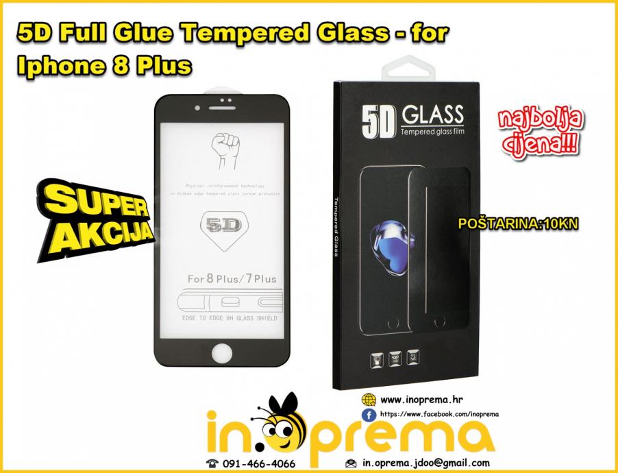 IPHONE 8 PLUS 8+ PLUS ZASTITA ZASTITNO STAKLO 5D FULL KALJENO STAKLENA FOLIJA POSTARINA 10 KN 091/466-4066