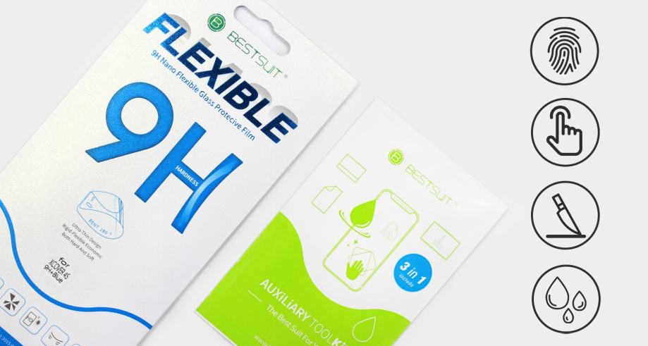 Fleksibilno hibridno staklo tvrtke Bestsuit s ultratankim dizajnom. Budući da staklo ne prekriva cijeli zaslon, vrlo je jednostavno za postavljanje čak i prosječnom korisniku. Zahvaljujući modernoj formuli, dobro prianja uz ekran, štiteći ga od ogrebotina. Visoka transparentnost osigurava savršenu jasnoću slike.