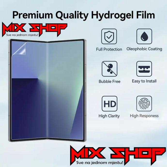 - U paketu dobivate 2 komada "jedan komad staklene zaštite za prednje staklo i jedan komad foliju za unutarnje preklopno staklo