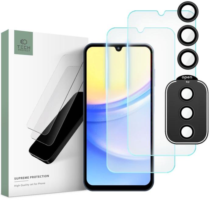 Tech-Protect Supreme komplet 2 kaljena stakla + zaštita za leće za Samsung GALAXY A15 4G / 5G