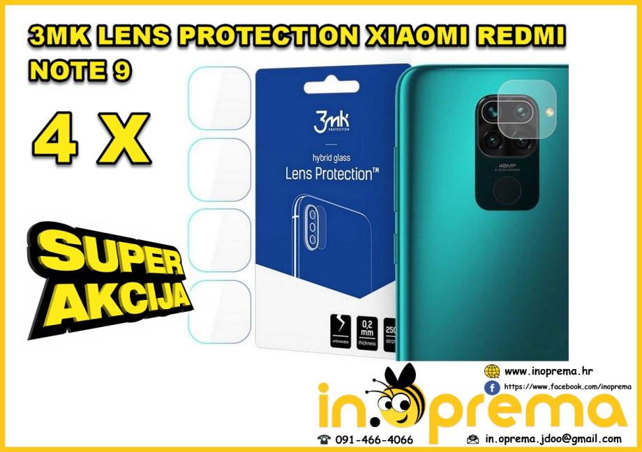 SET od 4 KOMADA 3MK LENS PROTECTION folije za XIAOMI REDMI NOTE 9 (keramičke) XIAOMI REDMI NOTE 9 STAKLO KAMERE ZASTITA ZA KAMERU POSTARINA 10 KN 091/466-4066
