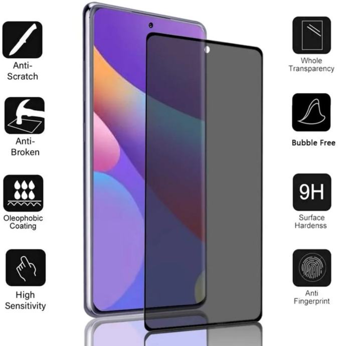 Više nikakvi nepoželjni pogledi na Vaš telefon. Ovo kaljeno staklo pomoći će Vam zaštititi Vašu privatnost. Na telefonu ćete vidjeti samo Vi, svi drugi vidjet će samo tamu. Staklo ima tvrdoću 9H te je 5D, dakle pokriva cijeli prednji dio telefona. Osim toga, prekriven je oleofobnim slojem koji odbija otiske. Sastavni dio paketa je pribor za jednostavno postavljanje stakla. Kada se koristi ovo staklo neće funkcionirati čitač otisaka prstiju.