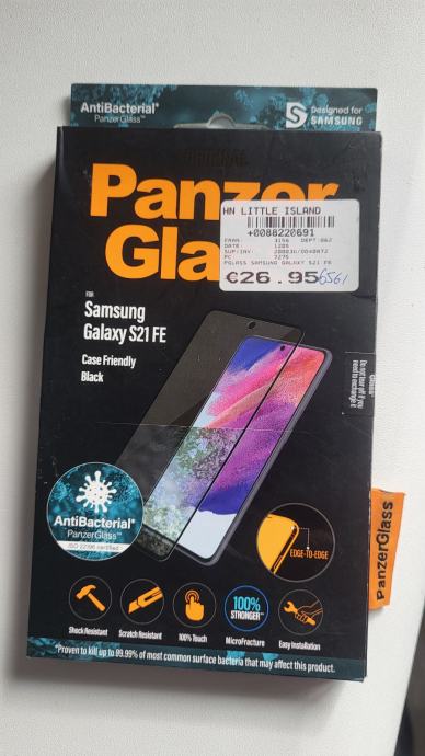 Prodajem novo zaštitno staklo PanzerGlass za Samsung Galaxy S21 FE. Staklo je antibakterijsko i pruža 100% zaštitu za ekran. Crne je boje (Case Friendly - Black verzija), što znači da je kompatibilno s većinom maski za mobitel. Uključuje EdgeGrip tehnologiju za lakše nanošenje i bolju adheziju uz rubove ekrana.