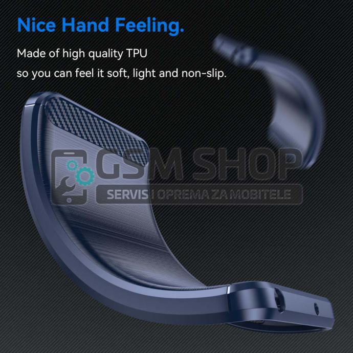 Eco-friendly TPU materijal s postupkom injekcijskog prešanja, te s ugrađenim drop zračnim jastukom. Učinkovito će zaštititi telefon od udara i kapljica. Posebno obrađena površina imitacija brušenog aluminija i karbona. Otporna na znoj i otiske prstiju. Gornji i donji dijelovi premazani su ugljičnim vlaknima za fini delux izgled.