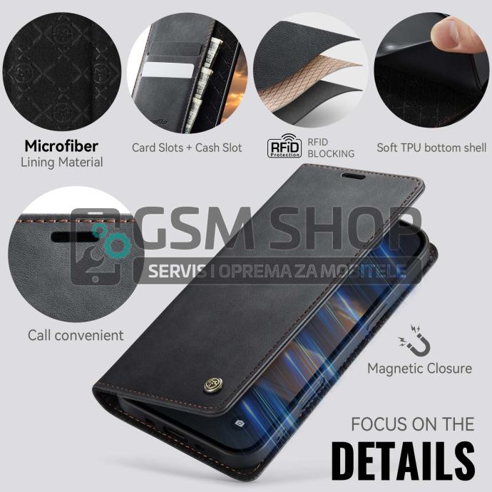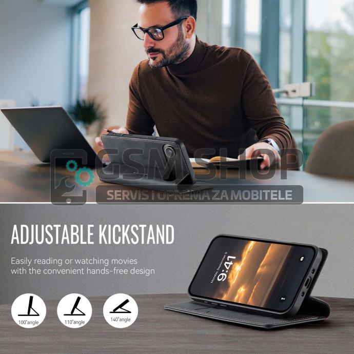CASEME torbica za iPhone Air izrađena je od PU kože i TPU materijala, osiguravajući pouzdanu zaštitu od svakodnevnog trošenja. Nudi RFID sigurnost, utore za kartice i novčanice, te se jednostavno pretvara u stalak za hands-free korištenje. Unutarnja mikrovlakna dodatno štite zaslon, a magnetna kopča čuva sadržaj na sigurnom.