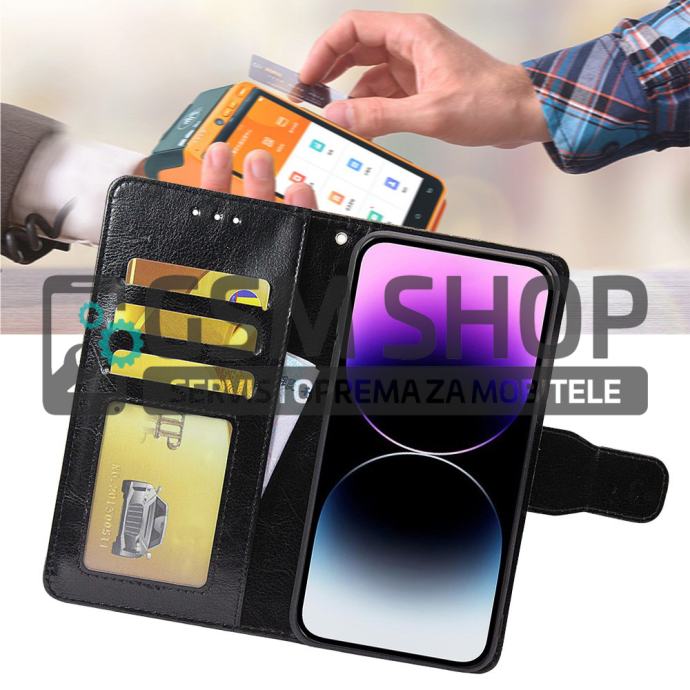Crazy Horse preklopna kožna torbica futrola Huawei P60 Pro / P60 crna