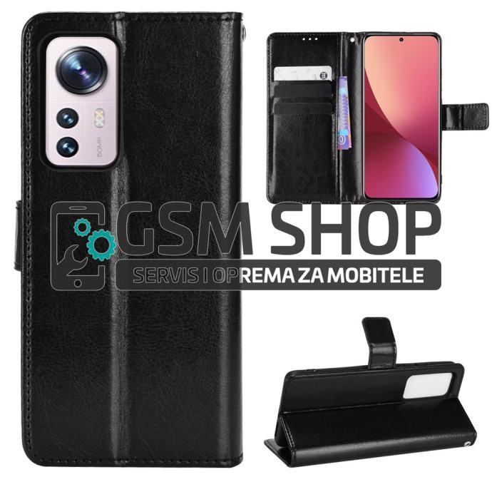 Crazy Horse preklopna zaštitna torbica futrola Xiaomi 12 / 12X crna