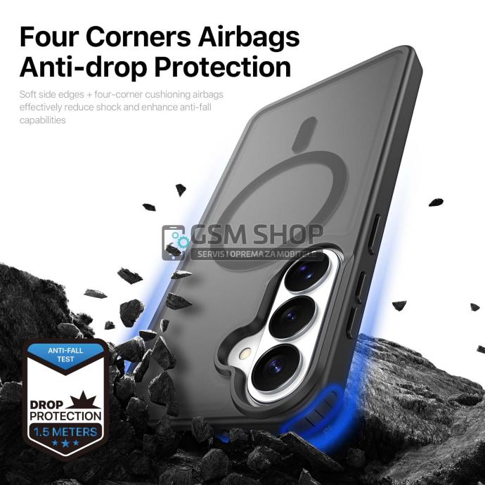 Pojačana stražnja strana i ojačani kutovi s dodatnom apsorpcijom udaraca pružaju visoku razinu zaštite od padova, ogrebotina i svakodnevnog habanja. Povišeni rubovi oko zaslona i kamere dodatno štite najosjetljivije dijelove uređaja.