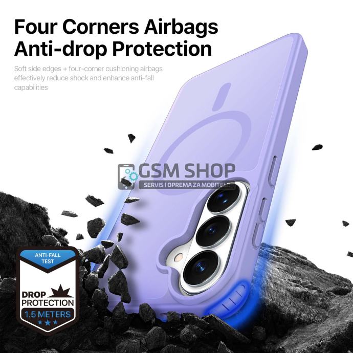 Pojačana stražnja strana i ojačani kutovi s dodatnom apsorpcijom udaraca pružaju visoku razinu zaštite od padova, ogrebotina i svakodnevnog habanja. Povišeni rubovi oko zaslona i kamere dodatno štite najosjetljivije dijelove uređaja.