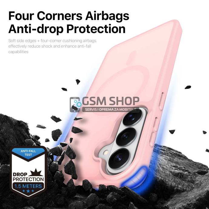 Pojačana stražnja strana i ojačani kutovi s dodatnom apsorpcijom udaraca pružaju visoku razinu zaštite od padova, ogrebotina i svakodnevnog habanja. Povišeni rubovi oko zaslona i kamere dodatno štite najosjetljivije dijelove uređaja.