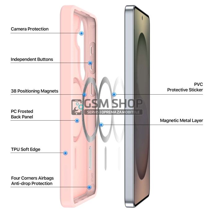 Opremljena s 38 snažnih magneta, maskica je potpuno kompatibilna s magnetskim punjačima, nosačima za automobil i drugim magnetskim dodacima, osiguravajući stabilno i sigurno prianjanje. Mat završna obrada otporna je na otiske prstiju i tragove znoja, zadržavajući uredan izgled kroz dugotrajnu upotrebu.