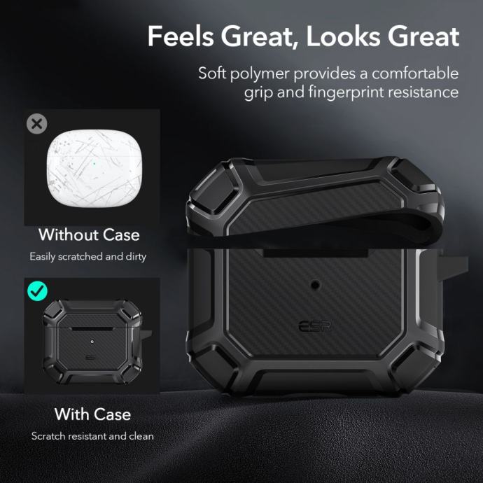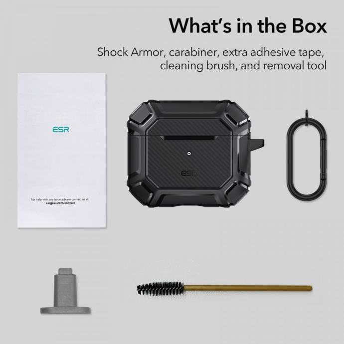 Oklop marke ESR Shock Armor kreiran za aktivne ljude koji cijene sigurnost svojih Apple Airpoda. Izrađen od visokokvalitetnog TPU-a, štitit će od ogrebotina i oštećenja, a u slučaju pada uzdignuti rubovi kućišta pružit će dodatnu zaštitu od oštećenja.