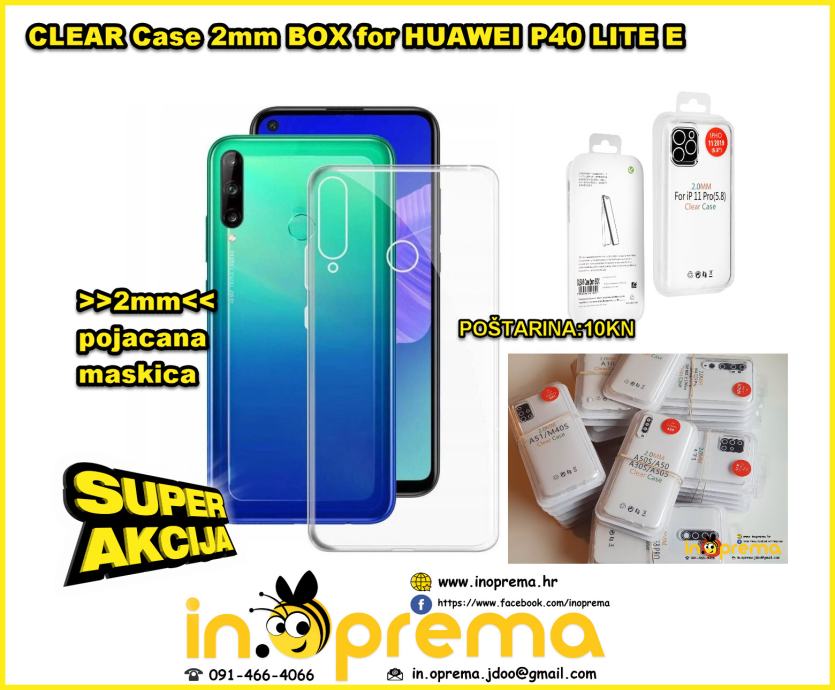 CLEAR Case 2mm BOX for HUAWEI P40 LITE E HUAWEI P40 LITE E P40LITE E ZA HUAWEI P40 LITE HUAWEI P40 LITE P 40 LITE E MASKA MASKICA FUTROLA TORBICA SILIKONSKA POSTARINA 10 KN 091/466-4066