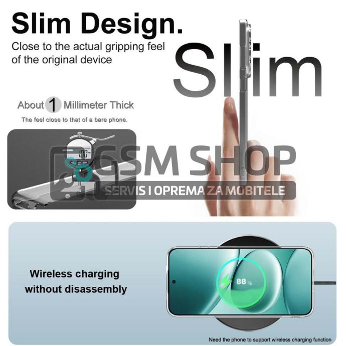 Prozirni dizajn omogućuje da boja i linije uređaja ostanu potpuno vidljive, čuvajući njegov izvorni izgled. Blago povišeni rubovi dodatno štite zaslon i kameru prilikom odlaganja na ravne površine, a precizni izrezi omogućuju neometan pristup svim tipkama i priključcima. Idealna je za korisnike koji žele diskretnu, ali učinkovitu zaštitu bez kompromisa u dizajnu.