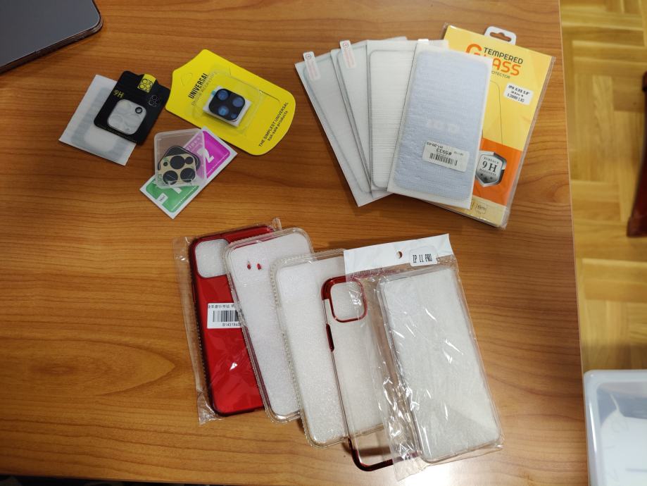 Prodajem zaštitnu opremu za iPhone 11 Pro: 6 kaljenih stakala, 5 silikonskih maskica, 4 zaštite za kameru.