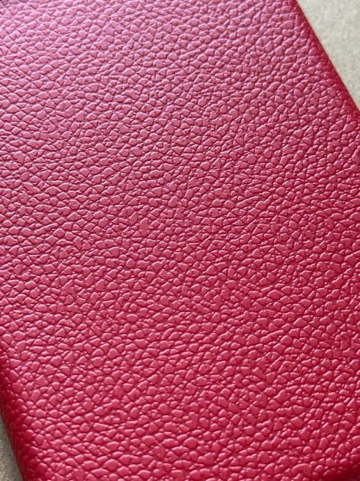 Zaštitna maskica za iPhone 16 Pro & Pro Max sa kožnim uzorkom. Dostupno u smeđoj i crvenoj boji, dok je oglas aktivan.
