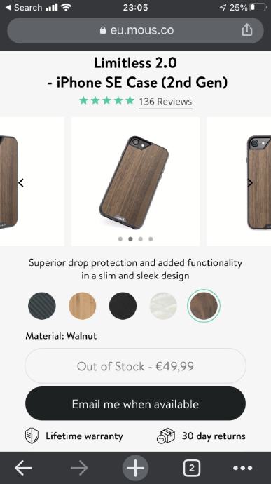 Bought new from UK during summer 2020. But due to delays in shipping, the product was never used. This Mous case sells for 50€ + shipping. But is here available for 40€.