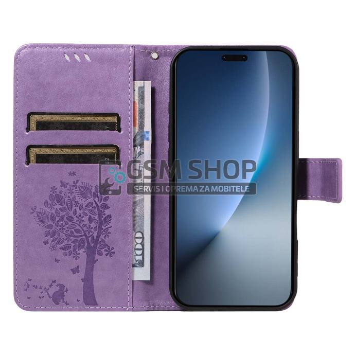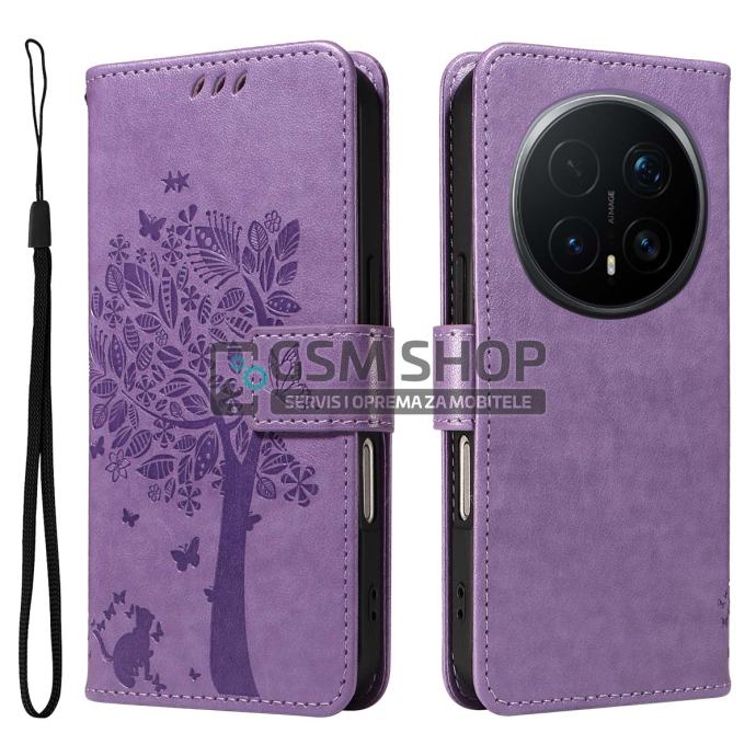 Kožna novčanik torbica Cat Tree za Honor Magic8 Pro 5G ljubičasta