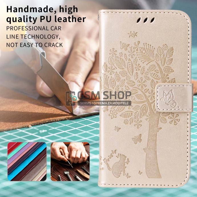 * Premium PU koža s elegantnim Cat & Tree uzorkom