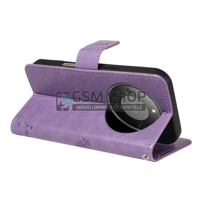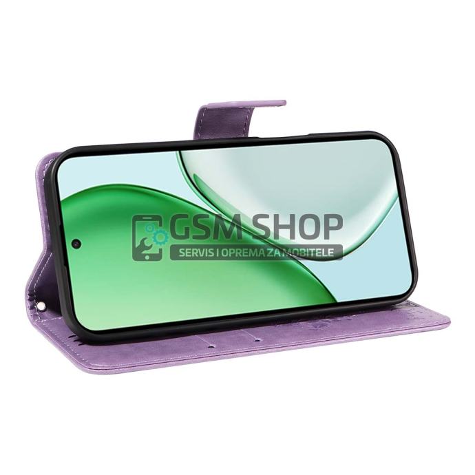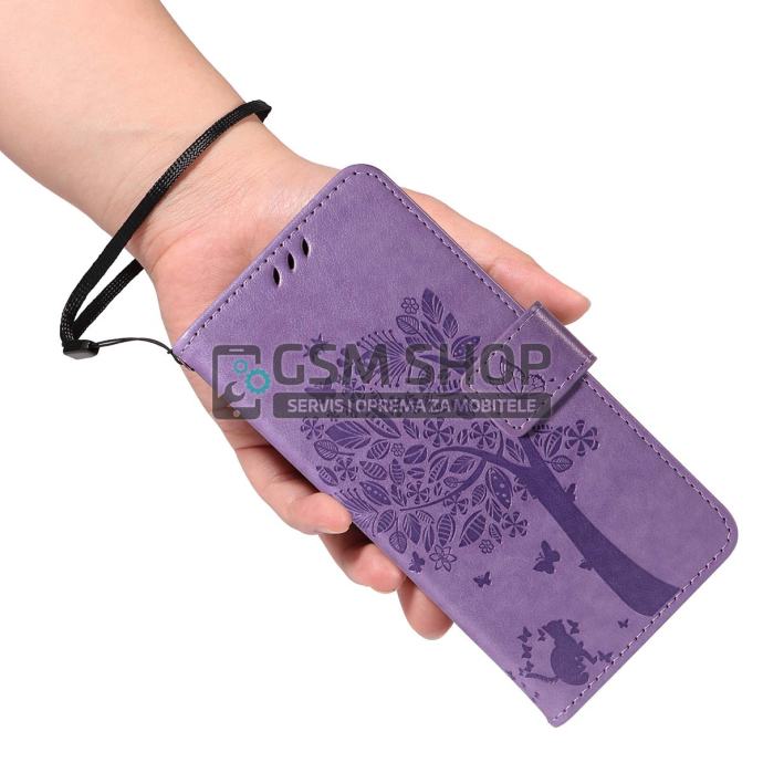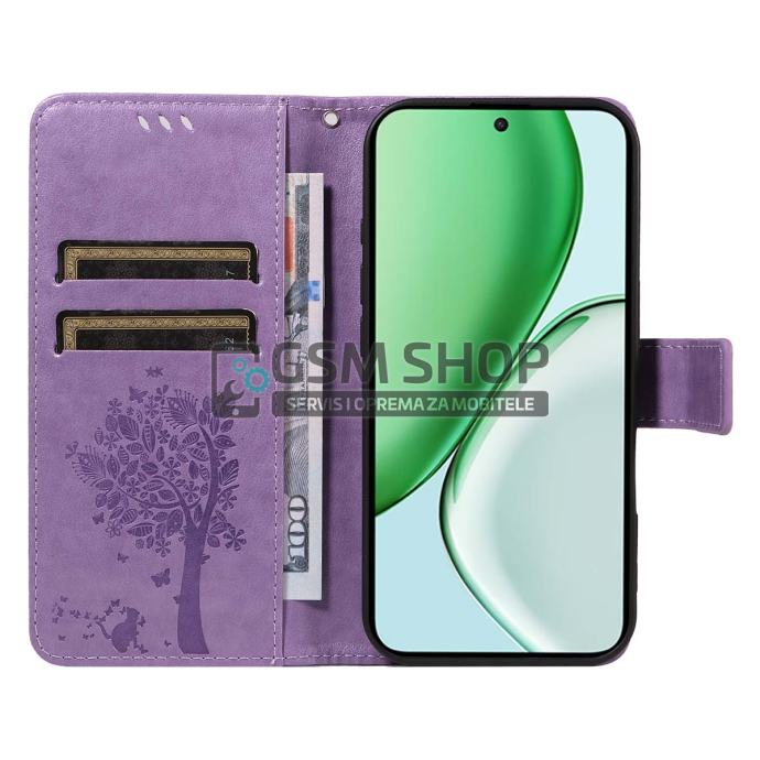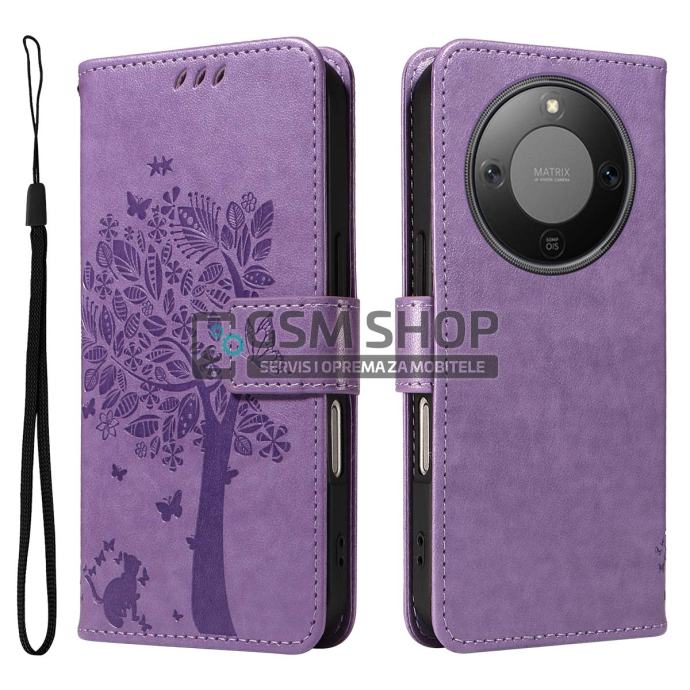 Kožna preklopna novčanik torbica Cat Tree za Honor Magic8 Lite 5G lila