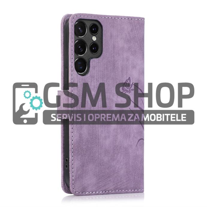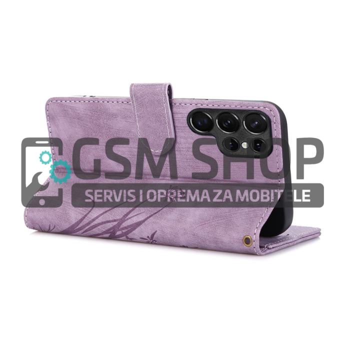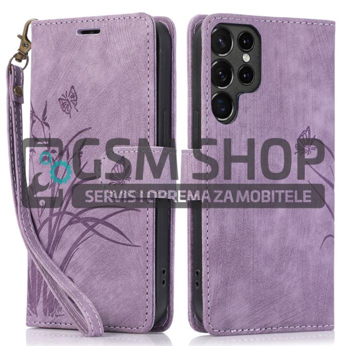 Leptir i orhideje preklopna torbica Samsung Galaxy S24 Ultra 5G Lila