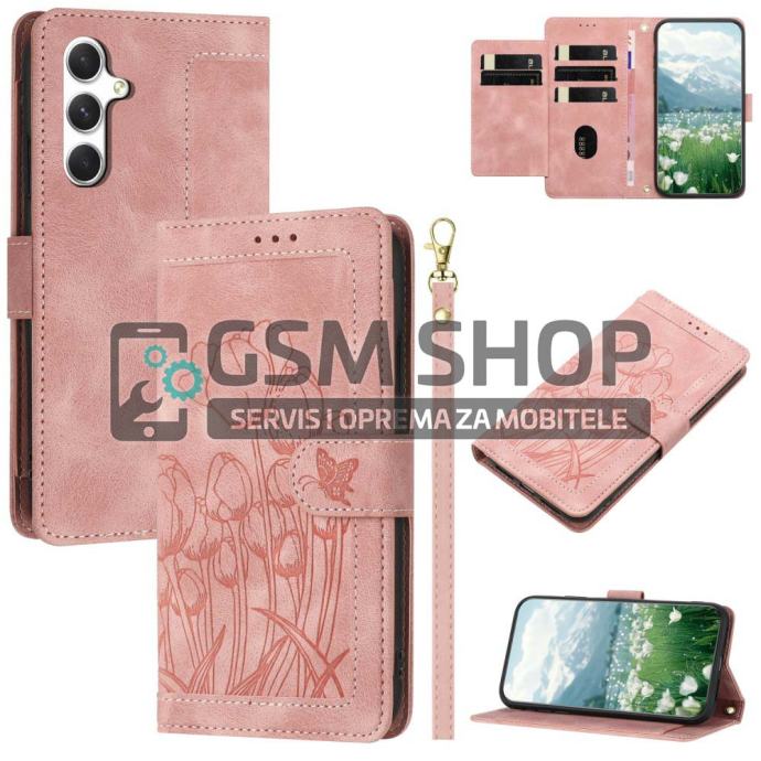 Leptir i tulipani novčanik preklopna torbica za Samsung S25 5G roza
