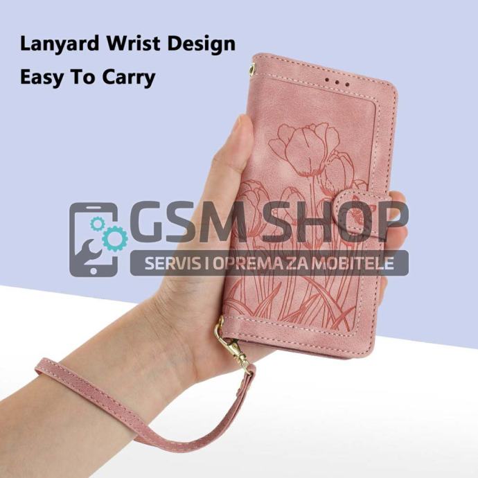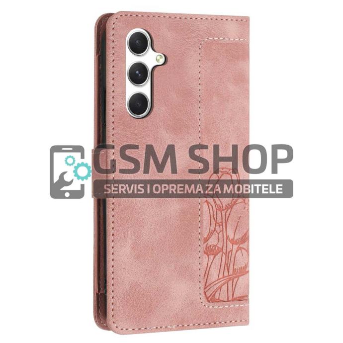 Leptir i tulipani novčanik preklopna torbica za Samsung S25 Plus roza