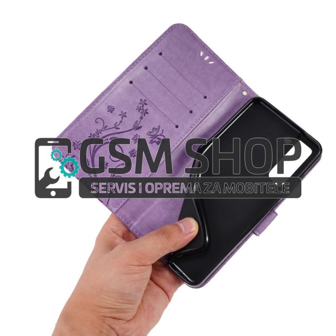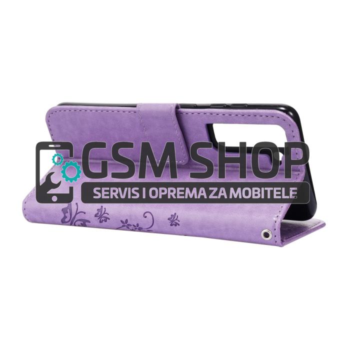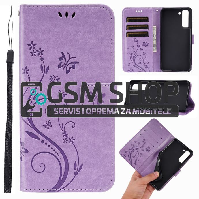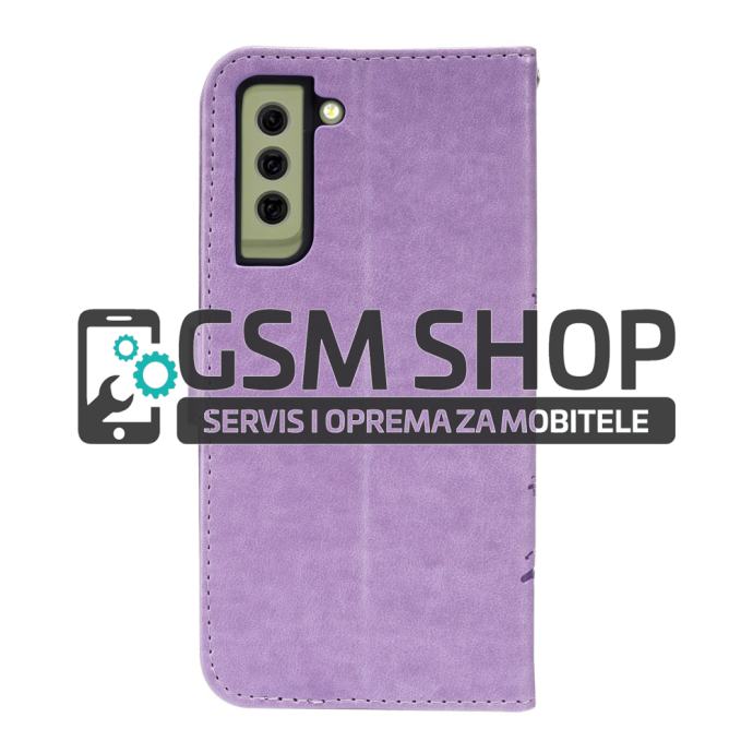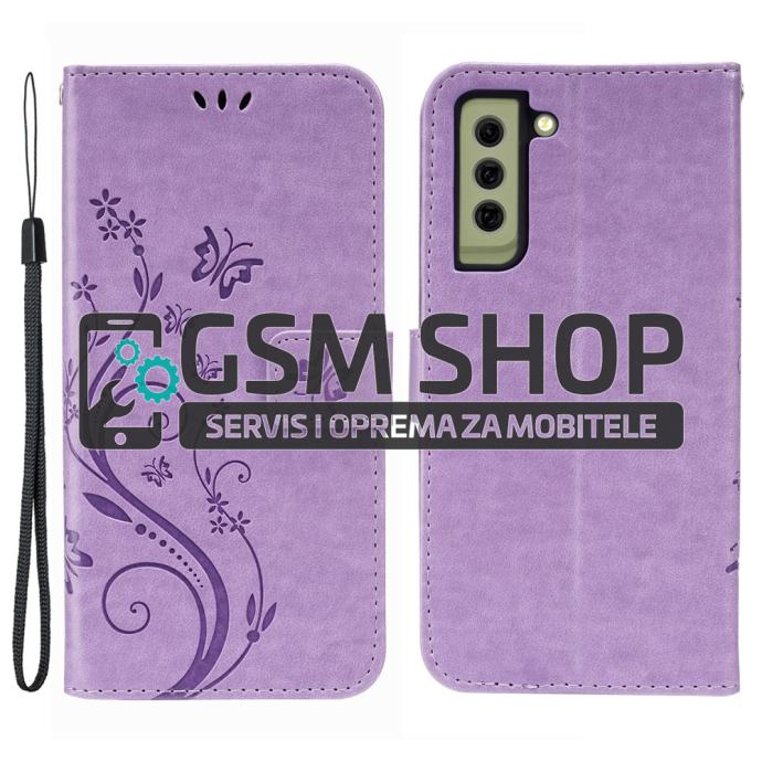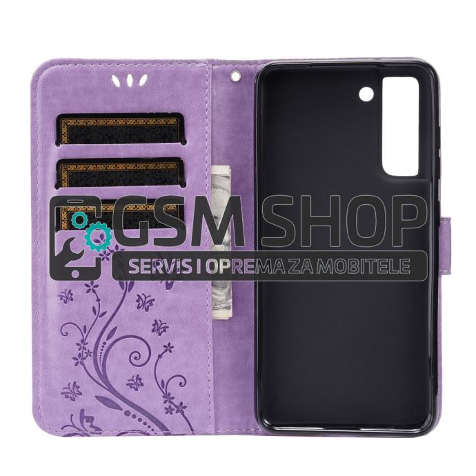 Leptiri dizajn preklopna torbica futrola Samsung Galaxy S21 FE 5G lila