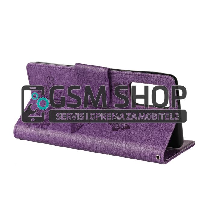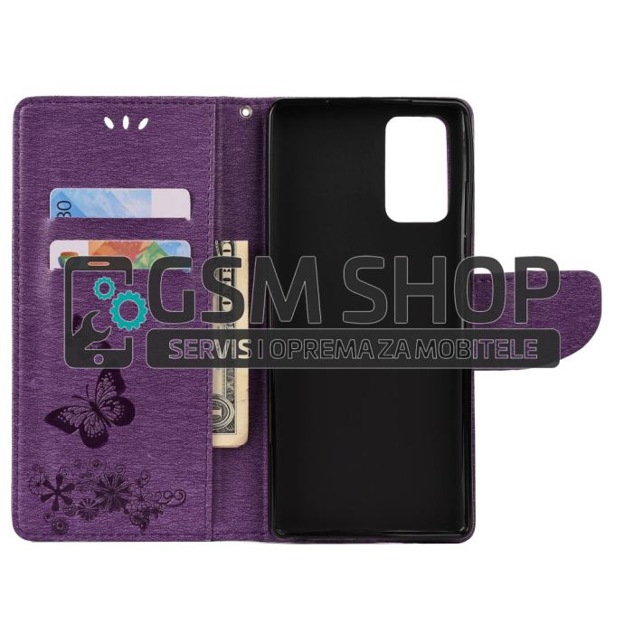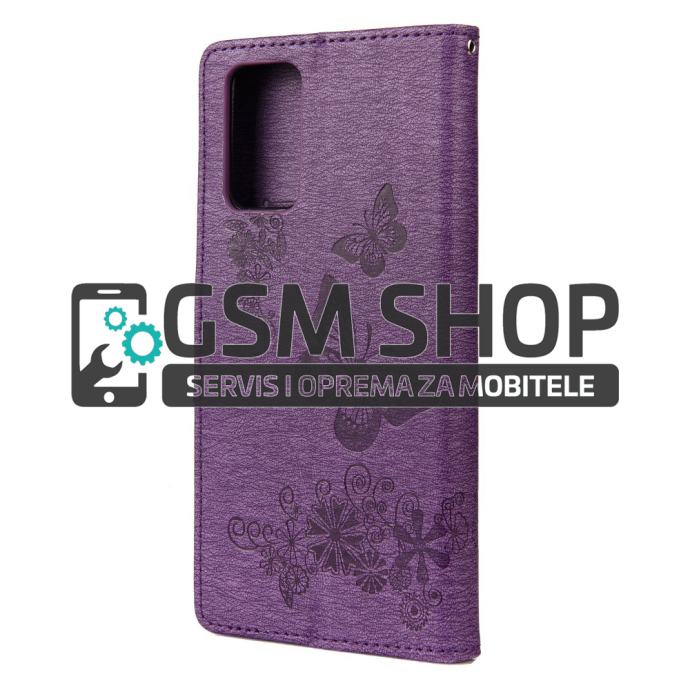 Leptiri dizajn preklopna torbica futrola Samsung S20 FE ljubičasta
